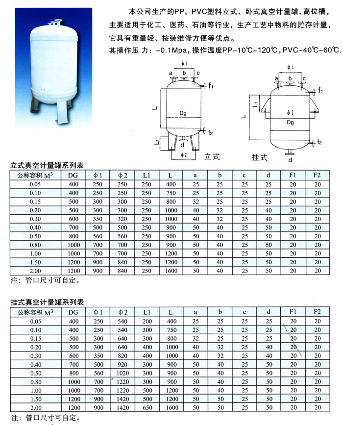 聚丙烯、聚氯乙烯真空計量罐、高位槽